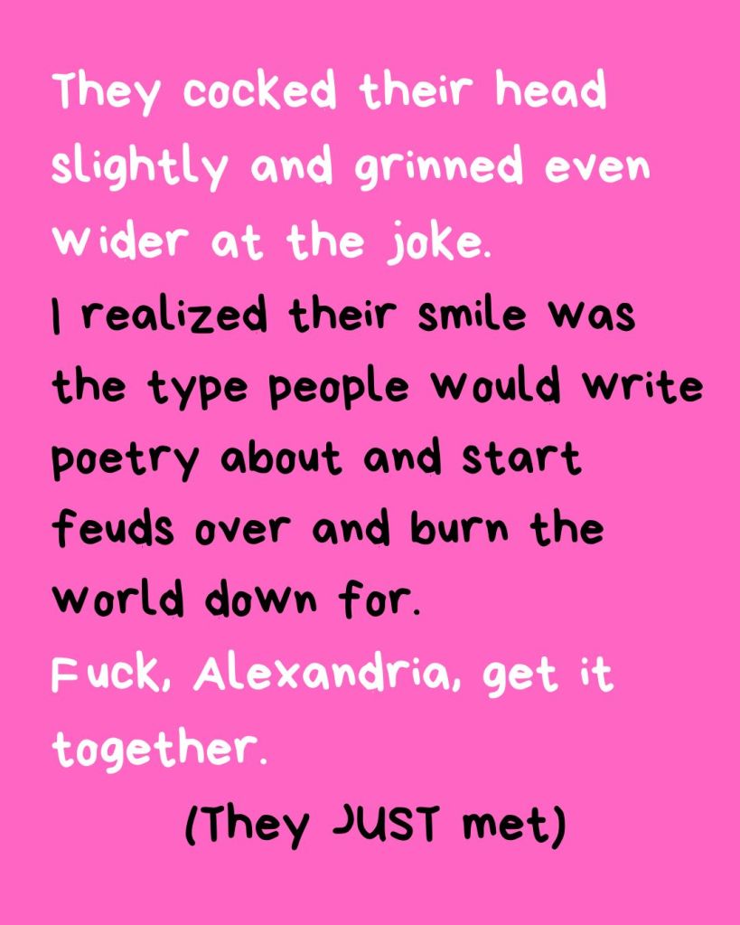 Now, however, I am back to being proud of it. I may re-release a revamped, less non-fictional version of the story one day. I might even post it here. But for now, I seek comfort in the fact that I did write a book once and it was cringe and flawed and naive – but it was and always will be wholly mine. The best and worst chapters, in more ways than one.